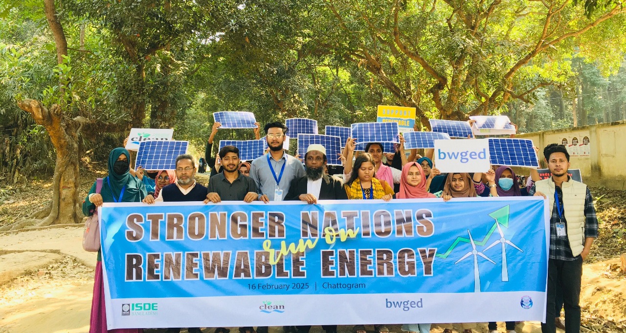চট্টগ্রাম বিশ্ববিদ্যালয়ে নবায়নযোগ্য জ্বালানিতে বাংলাদেশের রূপান্তর ত্বরান্বিত করার লক্ষ্যে কর্মী ও স্থানীয় জনগণের অংশগ্রহণে জোরালো দাবির উত্থাপন করা হয়েছে। আইএসডিই বাংলাদেশ (ISDE Bangladesh), যুব ক্যাব চট্টগ্রাম বিশ্ববিদ্যালয়, কোস্টাল লাইভলিহুড অ্যান্ড এনভায়রনমেন্টাল অ্যাকশন নেটওয়ার্ক (CLEAN) এবং বাংলাদেশ ওয়ার্কিং গ্রুপ অন ইকোলজি অ্যান্ড ডেভেলপমেন্ট (BWGED)-এর নেতৃত্বে এই প্রচারণা কর্মসূচিটি পালিত হয়, যেখানে জটিল প্রশাসনিক প্রক্রিয়া দূর করার পাশাপাশি টেকসই জ্বালানির জন্য একটি সুগম পথ তৈরির গুরুত্ব তুলে ধরা হয়। প্রচারণা কর্মসুচিতে বিশ্ববিদ্যালয়ের শিক্ষক, ছাত্র/চাত্রী, উন্নয়ন কর্মী, সামাজিক আন্দোলনের কর্মী ও জলবায়ুযোদ্ধারা অংশ নেন।