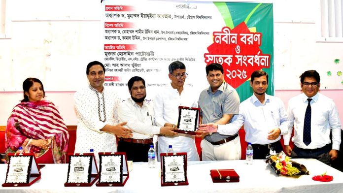 সেনবাগ স্টুডেন্টস অ্যাসোসিয়েশন, চট্টগ্রাম বিশ্ববিদ্যালয় এর উদ্যোগে নবীন বরণ ও স্নাতক সংবর্ধনা অনুষ্ঠান রবিবার (২৭ এপ্রিল) দুপুর ২ টায় চট্টগ্রাম বিশ্ববিদ্যালয় কলা ও মানববিদ্যা অনুষদ গ্যালারীতে অনুষ্ঠিত হয়েছে।