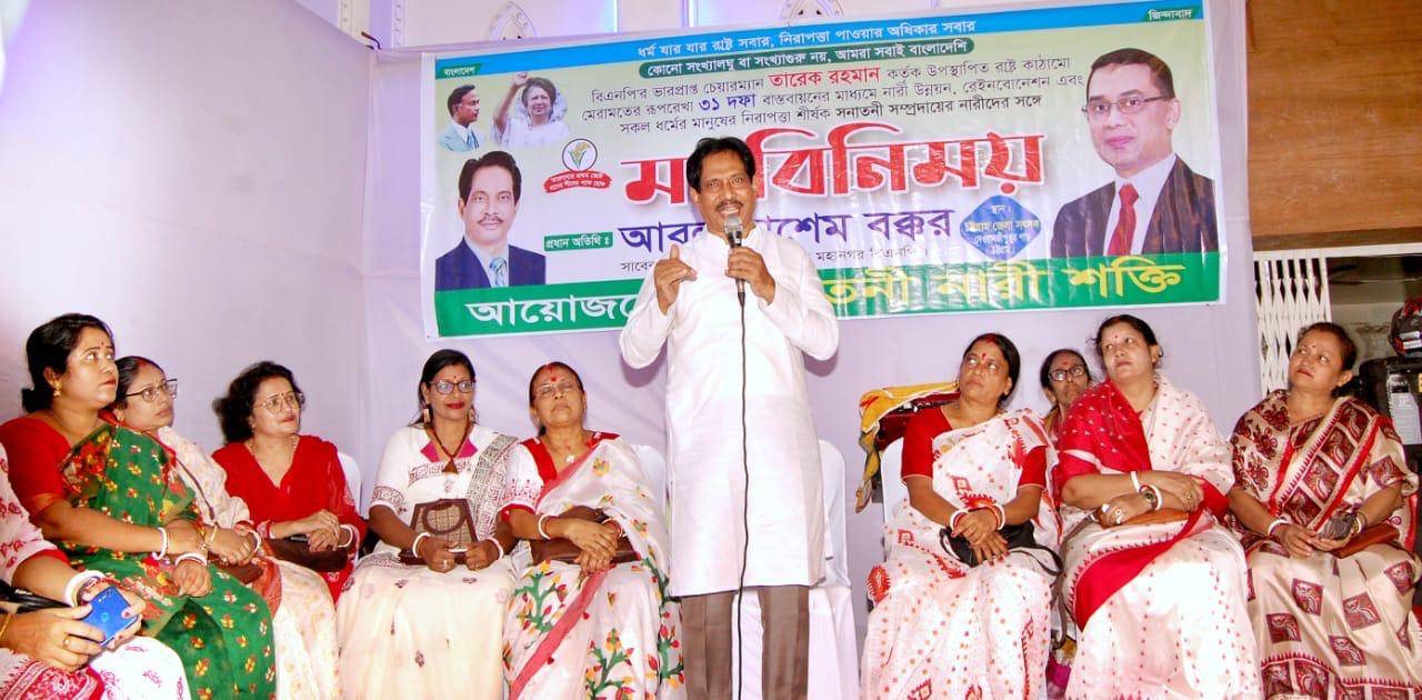 তিনি শনিবার (১ নভেম্বর) বিকেলে নগরীর দেওয়ানজী পুকুর পাড়স্থ চট্টগ্রাম জেলা সৎসঙ্গ আশ্রমে বিএনপির রাষ্ট্র কাঠামো মেরামতের ৩১ দফা বাস্তবায়নে জনমত গঠনের লক্ষে সনাতনী নারী শক্তির উদ্যোগে সনাতনী নারী সম্প্রদায়ের সাথে মতবিনিময় সভায় প্রধান অতিথির বক্তব্যে এসব কথা বলেন।