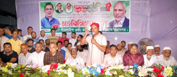 তিনি আজ ১০ নভেম্বর (সোমবার) সন্ধ্যায় পাঁচলাইশ ওয়ার্ড যুবদলের উদ্যোগে শহীদ নগর এলাকায় নাগরিক সচেতনা বৃদ্ধি ও কেন্দ্র ভিত্তিক স্থানীয় জনগণের সাথে আগামী সংসদ নির্বাচনে বিএনপি মনোনিত প্রার্থী এরশাদ উল্লাহ’র ধানের শীষের সমর্থনে মতবিনিময় সভায় প্রধান অতিথির বক্তব্যে এসব কথা বলেন।