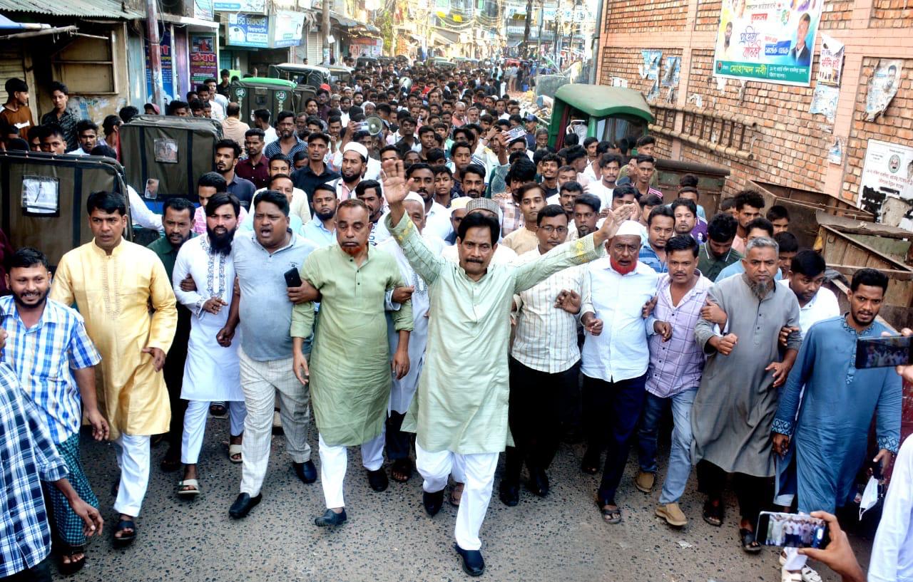 তিনি নেতাকর্মীদের সাথে নিয়ে নগরীর মিয়াখান নগর পুল থে‌কে শুরু করে বাদমতলী, ময়দার মি‌লের মোড়, বা‌দিয়ার টেক, ইসহা‌কের পুল এলাকায় সাধারণ মানুষের মাঝে লিফ‌লেট বিতরন ও গণসংযোগ করেন।