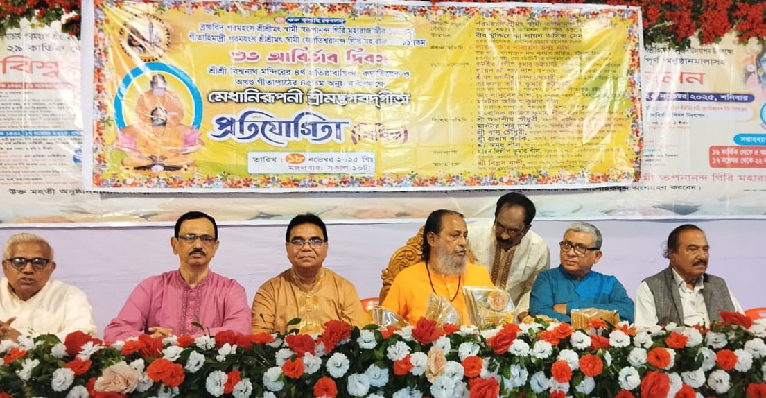 সীতাকুন্ড শঙ্কর মঠ ও মিশনের ব্রহ্মবিদ পরমহংস শ্রীশ্রীমৎ স্বামী স্বরূপানন্দ গিরি মহারাজের ১৫৪তম, গীতাহিমাদ্রী পরমহংস শ্রীশ্রীমৎ স্বামী জ্যোতিশ^রানন্দ গিরি মহারাজের ১১৭তম আবির্ভাব দিবস, শ্রীশ্রীবিশ্বনাথ মন্দিরের ৪র্থ প্রতিষ্ঠাবার্ষিকী, রুদ্রাভিষেক ও অখন্ড গীতাপাঠের ৪৫তম আসর উপলক্ষে সপ্তাহব্যাপী বর্ণাঢ্য অনুষ্ঠানের ৩য় দিন আজ ১৮ নভেম্বর মঙ্গলবার বিভিন্ন গীতা স্কুলের শিক্ষার্থীদের নিয়ে মেধানিরূপনী শ্রীমদ্ভগবদগীতা প্রতিযোগিতা (লিখিত) অনুষ্ঠিত হয়।