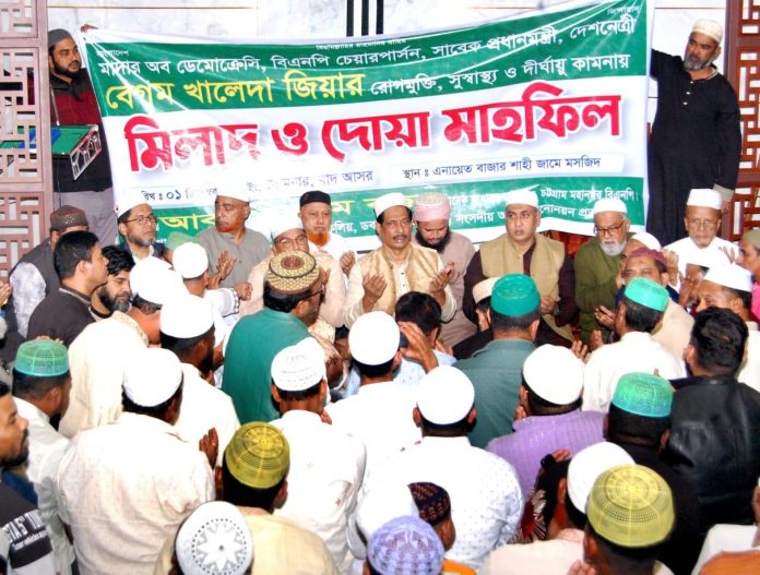তিনি সোমবার (১ ডিসেম্বর) বাদে আসর নগরীর এনায়েত বাজার শাহী জামে মসজিদে বিএনপি চেয়ারপারসন ও সাবেক প্রধানমন্ত্রী বেগম খালেদা জিয়ার রোগমুক্তি, দীর্ঘায়ু ও সুস্থতা কামনায় চট্টগ্রাম ৯ সংসদীয় আসন বিএনপির উদ্যোগে আয়োজিত এক বিশেষ দোয়া মাহফিলে এসব কথা বলেন।