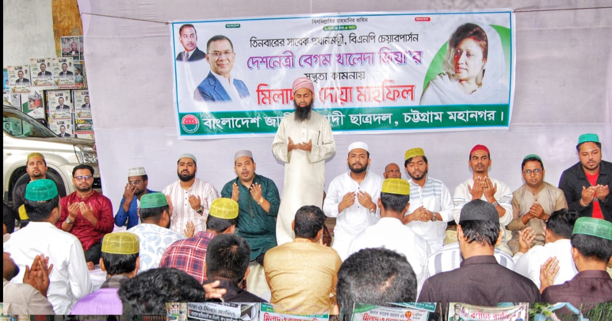 সাবেক প্রধানমন্ত্রী, বিএনপি চেয়ারপার্সন বেগম খালেদা জিয়ার সুস্থতা কামনায় মিলাদ ও দোয়া মাহফিল করে চট্টগ্রাম মহানগর ছাত্রদল।