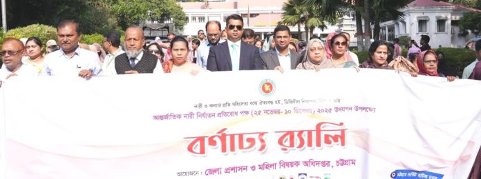চট্টগ্রাম জেলা প্রশাসন ও মহিলা বিষয়ক অধিদপ্তর যৌথভাবে অনুষ্ঠানের আয়োজন করেন। আন্তর্জাতিক নারী নির্যাতন প্রতিরোধ পক্ষের এবারের প্রতিপাদ্য বিষয়-‘নারী ও কন্যার প্রতি সহিংসতা বন্ধে ঐক্যবদ্ধ হই, ডিজিটাল নিরাপত্তা নিশ্চিত করি’।