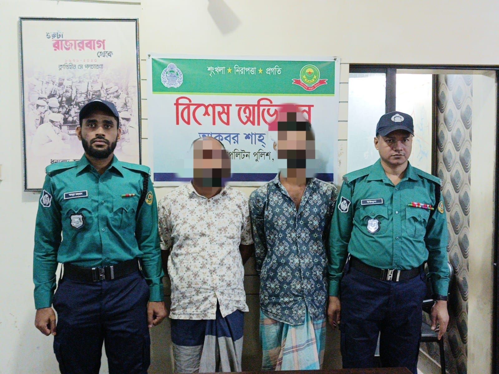 আকবরশা থানার ভারপ্রাপ্ত কর্মকর্তা (ওসি) মো. আরিফুর রহমান জানান, গোপন সংবাদের ভিত্তিতে দুইজনকে গ্রেপ্তার করা হয়েছে। তাদের বিরুদ্ধে অভিযোগের সত্যতা পাওয়ায় আকবরশাহ থানায় তাদের বিরুদ্ধে ইমারত নির্মাণ আইনের ১৯৫২ ধারার ১২(১অ) (ধ) অনুযায়ী মামলা করা হযেছে। এলাকার কুখ্যাত ভূমিদুস্য এই দুইজনকে মঙ্গলবার আদালতে সোপর্দ করা হয়েছে।