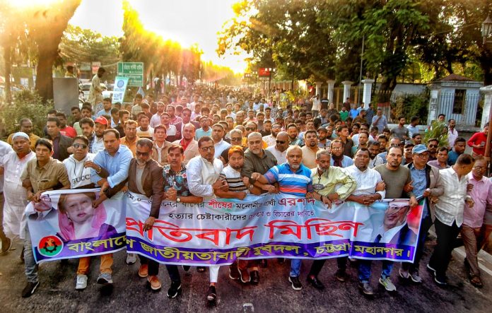 আসন্ন ত্রয়োদশ জাতীয় সংসদ নির্বাচনে প্রার্থীদের উপর গুপ্ত সন্ত্রাসী কর্তৃক গুলিবিদ্ধ করার সহিংস ঘটনায় তদন্তের মাধ্যমে প্রকৃত দুষ্কৃতিকারিদের শাস্তির দাবিতে আজ শনিবার (১৩ ডিসেম্বর) দুপুরে চট্টগ্রাম মহানগর যুবদলের প্রতিবাদ মিছিল স্টেডিয়াম জিমনেশিয়াম মোড় থেকে শুরু হওয়া মিছিল পূর্ব সমাবেশে সভাপতির বক্তব্যে এসব কথা বলেন।