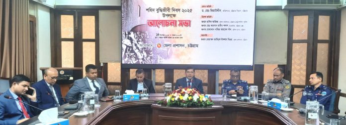 চট্টগ্রাম জেলা প্রশাসক মোহাম্মদ জাহিদুল ইসলাম মিঞার সভাপতিত্বে ও অতিরিক্ত জেলা প্রশাসক (সার্বিক) মোঃ শরীফ উদ্দিনের সঞ্চালনায় অনুষ্ঠিত শহিদ বুদ্ধিজীবি দিবসের আলোচনা সভায় বিশেষ অতিথি ছিলেন পুলিশের চট্টগ্রাম রেঞ্জের ডিআইজি আহসান হাবীব পলাশ, অতিরিক্ত বিভাগীয় কমিশনার মোঃ মোতাহার হোসেন, সিএমপি’র অতিরিক্ত পুলিশ কমিশনার মোঃ হুমায়ুন কবীর, জেলা পুলিশ সুপার (এসপি) মোহাম্মাদ নাজির আহমেদ খাঁন।