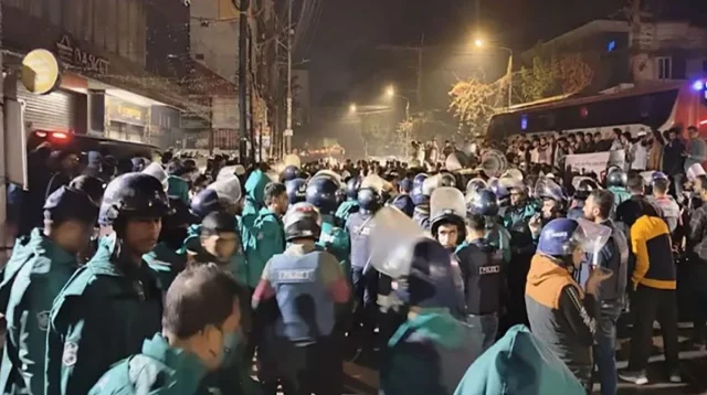 পুলিশ সূত্রে জানা গেছে, শরিফ ওসমান বিন হাদির মৃত্যুর খবর ছড়িয়ে পড়ার পর বৃহস্পতিবার রাত প্রায় ১০টার দিক থেকে একদল লোক ভারতীয় সহকারী হাইকমিশনারের বাসভবনের সামনে জড়ো হতে থাকে। পরে রাত গভীর হলে তারা উত্তেজিত হয়ে ওঠে এবং সহিংসতার চেষ্টা চালায়।