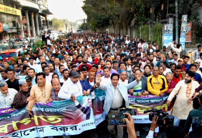আবুল হাশেম বক্করের উদ্যোগে আয়োজিত স্বাগত মিছিলটি কাজির দেউরী কাঁচা বাজারে সামনে থেকে শুরু হয়ে কাজীর দেউরী মোড়, আলমাস সিনেমা মোড় হয়ে ওয়াসা মোড়ে গিয়ে শেষ হয়।