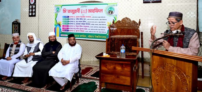 চট্টগ্রাম বিশ্ববিদ্যালয় কেন্দ্রীয় জামে মসজিদের উদ্যোগে শুক্রবার (১৬ জানুয়ারি ২০২৬) বাদ মাগরিব পবিত্র ‘মি’রাজুন্নবী (সা.) উপলক্ষে আলোচনা সভা ও দোয়া মাহফিলে প্রধান অতিথির বক্তব্যে এসব কথা বলেন চবি উপাচার্য।