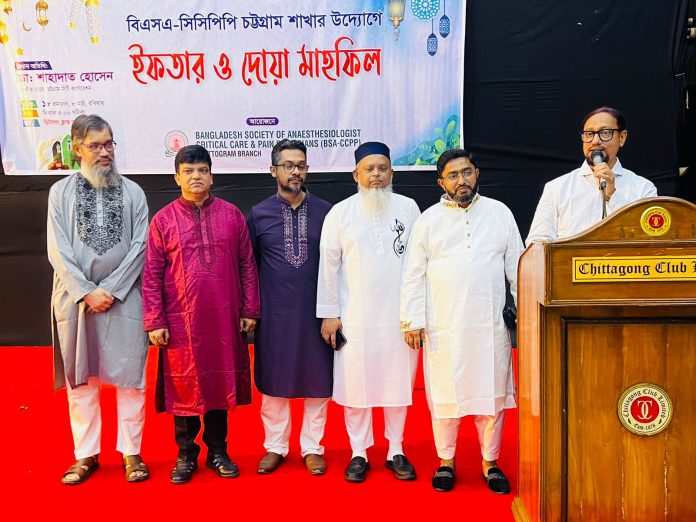 বাংলাদেশ সোসাইটি অব অ্যানেস্থেসিওলজিস্টস, ক্রিটিক্যাল কেয়ার অ্যান্ড পেইন ফিজিশিয়ানস (বিএসএ-সিসিপিপি) চট্টগ্রাম শাখার উদ্যোগে ইফতার ও দোয়া মাহফিল অনুষ্ঠিত হয়েছে।