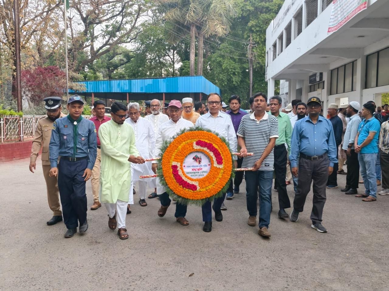 শ্রদ্ধা নিবেদন ও বীর শহীদদের স্মরণঃ রেলওয়ে পশ্চিমাঞ্চলের মহাব্যবস্থাপক (জিএম) প্রকৌশলী ফরিদ আহমেদ’র নেতৃত্বে বিভাগীয় পর্যায়ের ঊর্ধ্বতন কর্মকর্তাবৃন্দ এবং বিভিন্ন শ্রমিক-কর্মচারী সংগঠনের নেতৃবৃন্দ শহীদ মিনারে পুষ্পস্তবক অর্পণ করেন। এসময় মহান মুক্তিযুদ্ধে আত্মদানকারী শহীদদের স্মৃতির প্রতি শ্রদ্ধা জানিয়ে এক মিনিট নীরবতা পালন করা হয় এবং তাদের আত্মার মাগফিরাত কামনায় বিশেষ দোয়া অনুষ্ঠিত হয়।