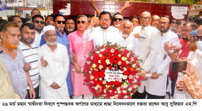 বৃহস্পতিবার (২৬ মার্চ) বেলা ১১টায় স্বাধীনতা দিবস উপলক্ষ্যে ষোলশহর ০২নং গেইট জাতীয় বিপ্লব উদ্যানে পুষ্পস্তবক অর্পণের মাধ্যমে শ্রদ্ধা নিবেদন শেষে তিনি এসব কথা বলেন।
