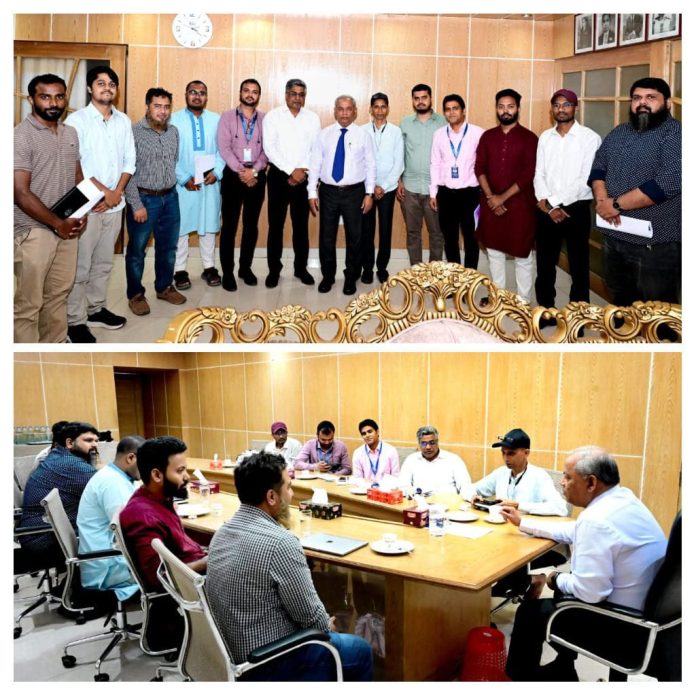 চট্টগ্রাম বিশ্ববিদ্যালয়ের আবাসিক হলগুলোতে উচ্চগতির ব্যান্ডউইথ সেবা প্রদানের লক্ষ্যে চট্টগ্রাম বিশ্ববিদ্যালয় আইসিটি সেলের উদ্যােগে মাননীয় উপাচার্য প্রফেসর ড. মোহাম্মদ আল্-ফোরকান এর সঙ্গে আজ রবিবার (৫ এপ্রিল ২০২৬) দুপুর একটায় উপাচার্য দপ্তরে বিডিকম ও চট্টগ্রাম বিশ্ববিদ্যালয় কেন্দ্রীয় ছাত্র সংসদের (চাকসু) ইন্টারনেট বাস্তবায়ন সংক্রান্ত এক সভা অনুষ্ঠিত হয়।