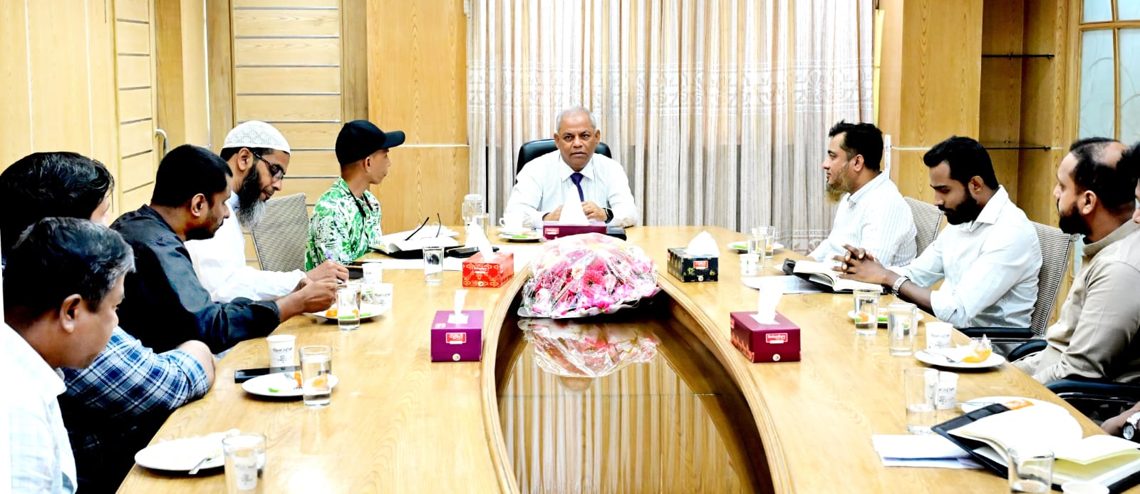 এসময় উপস্থিত ছিলেন আইসিটি সেলের পরিচালক প্রফেসর সাইদুর রহমান চৌধুরী, অতিরিক্ত পরিচালক প্রফেসর মোহাম্মদ রোকন উদ্দীন ফারুকী, সিনিয়র ইন্সট্রাক্টর (ডেপুটি রেজিস্ট্রার) মোহাম্মদ ফোরকান, সিনিয়র কম্পিউটার প্রকৌশলী এস.এম আহসানুল করিম শিমুল, কম্পিউটার প্রোগ্রামার গোলাম মোস্তফা, ইন্সট্রুমেন্ট ইঞ্জিনিয়ার (ইলেকট্রিক্যাল) এ.কে.এম রিয়াজুল কবির (রবিন) ও সহকারী রেজিস্ট্রার মো. সালাউদ্দীনসহ অন্যান্য কর্মকর্তা-কর্মচারীবৃন্দ। আইসিটি সেলের পরিচালক প্রফেসর সাইদুর রহমান চৌধুরী মাননীয় উপাচার্যকে সময় দেওয়ার জন্য এবং প্রয়োজনীয় দিকনির্দেশনা প্রদান করার জন্য ধন্যবাদ ও কৃতজ্ঞতা জ্ঞাপন করেন।