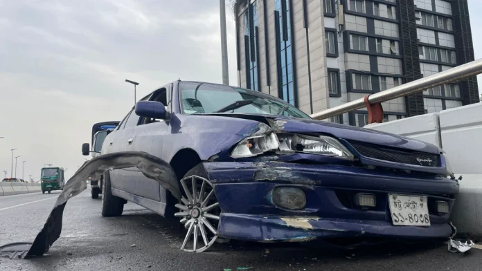 প্রত্যক্ষদর্শী ও আইনশৃঙ্খলা বাহিনীর সদস্যদের তথ্য অনুযায়ী, দুর্ঘটনার সময় গাড়িটিতে একজন যুবক ও একজন তরুণী ছিলেন। অতিরিক্ত গতির কারণে চালক নিয়ন্ত্রণ হারালে গাড়িটি সড়কের ডিভাইডার বা পাশের কাঠামোর সঙ্গে ধাক্কা খায় বলে প্রাথমিকভাবে ধারণা করা হচ্ছে। এতে গাড়ির সামনের অংশ দুমড়ে-মুচড়ে যায় এবং দুই আরোহী গুরুতর আহত হন।