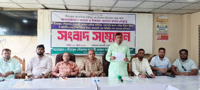 শনিবার (১১ এপ্রিল) বিকালে সীতাকুণ্ড প্রেস ক্লাবের অডিটোরিয়াম সীতাকুণ্ড পৌরসদর ব্যবসায়ী দোকান মালিক সমিতি ও ব্যবসায়ীবৃন্দ উক্ত সংবাদ সম্মেলনের আয়োজন করে। এতে লিখিত বক্তব্য পাঠ করেন সংগঠনের সেক্রেটারী মোঃ সাজ্জাদ হোসেন রফিক।