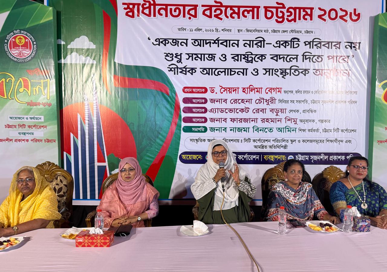 চট্টগ্রাম সিটি করপোরেশনের উদ্যোগে ১৯ দিন ব্যাপি বই মেলার ১২ তম দিনে “একজন আদর্শবান নারী, শুধু একটি পরিবার নয়, সমাজ ও রাষ্ট্রকেও বদলে দিতে পারে” শীর্ষক এই আলোচনা সভার আয়োজন করা হয়।