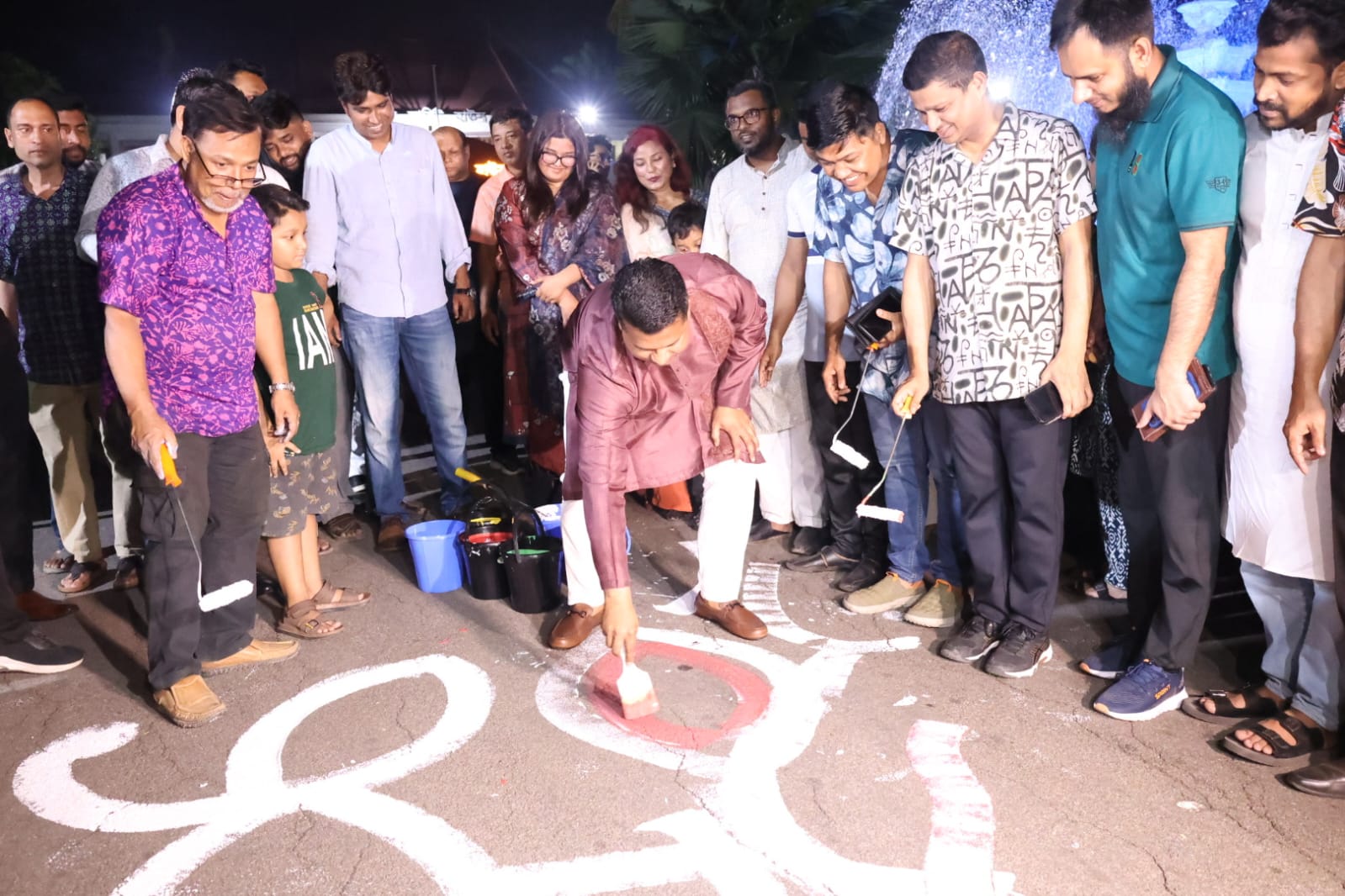 জেলা প্রশাসক জাহিদুল ইসলাম গত রাতে বলেন, “আমরা আসলে দেড় কিলোমিটার যে আল্পনা করছি, সেখানে আপনারা দেখছেন বিভিন্ন রঙে আমাদের এই সড়ক রাঙানো হচ্ছে। আমরা আমাদের জীবনকেও এবং ভবিষ্যৎ প্রজন্মকেও সেভাবে রাঙিয়ে তুলতে চাই।”