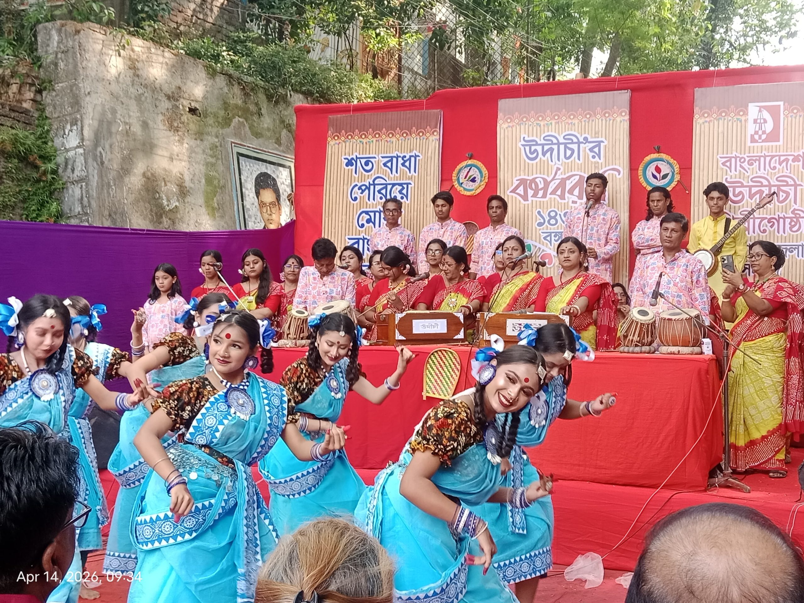 গান, কবিতা,ননৃত্যর তালে তালে জীবনের গান গেয়ে উদীচী শিল্পীকর্মীরা শিহরণ জাগিয়ে বরণ করে নিয়েছে ১৪৩৩ বঙ্গাব্দ।