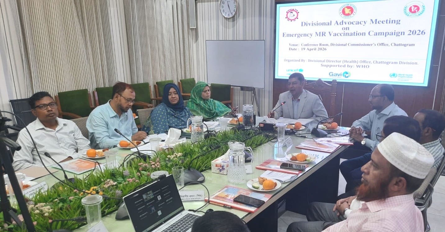 হাম-রুবেলার জরুরী টিকাদান ক্যাম্পেইন-২০২৬ উপলক্ষে আজ ১৯ এপ্রিল রোববার সকাল ১১টায় বিভাগীয় কমিশনার কর্যালয়ের কনফারেন্স হলে বিভাগীয় স্বাস্থ্য পরিচালক কার্যালয় আয়োজিত বিভাগীয় পর্যায়ের অ্যাডভোকেসী সভায় সভাপতির বক্তব্যে তিনি এসব কথা বলেন।