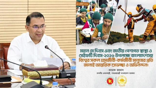 প্রধানমন্ত্রী আরও বলেন, আন্তর্জাতিক শ্রম সংস্থার (আইএলও) বিভিন্ন কনভেনশন বাস্তবায়নের মাধ্যমে শ্রমিকদের অধিকার সুরক্ষায় সরকার প্রতিশ্রুতিবদ্ধ। নিয়মিত মজুরি পর্যালোচনা, নারী-পুরুষ সমান মজুরি এবং সময়মতো বেতন-ভাতা পরিশোধ নিশ্চিত করতে সরকার কাজ করছে।