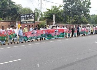 বন্ধ মিল চালুসহ ৮ দফা দাবীতে সীতাকুণ্ডে ৫ জুট মিলে মানববন্ধন...