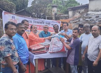 সিআরবি মালিপাড়া বস্তিতে অগ্নিকাণ্ডে ক্ষতিগ্রস্তদের মাঝে শঙ্কর মঠের মানবিক সহায়তা প্রদান