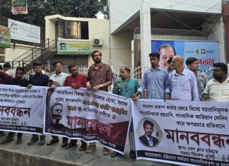 এসএ গ্রুপ অব ইন্ডাস্ট্রির মালিক পক্ষের বিরুদ্ধে সাংবাদিকদের মানববন্ধন