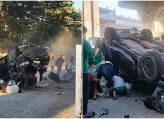 এক্সপ্রেসওয়ের রেলিং ভেঙে নিচের সড়কে গাড়ি, প্রাণ গেল পথচারীর