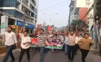 জিইসি মোড় এলাকায় ছাত্রলীগের বিক্ষোভ মিছিল